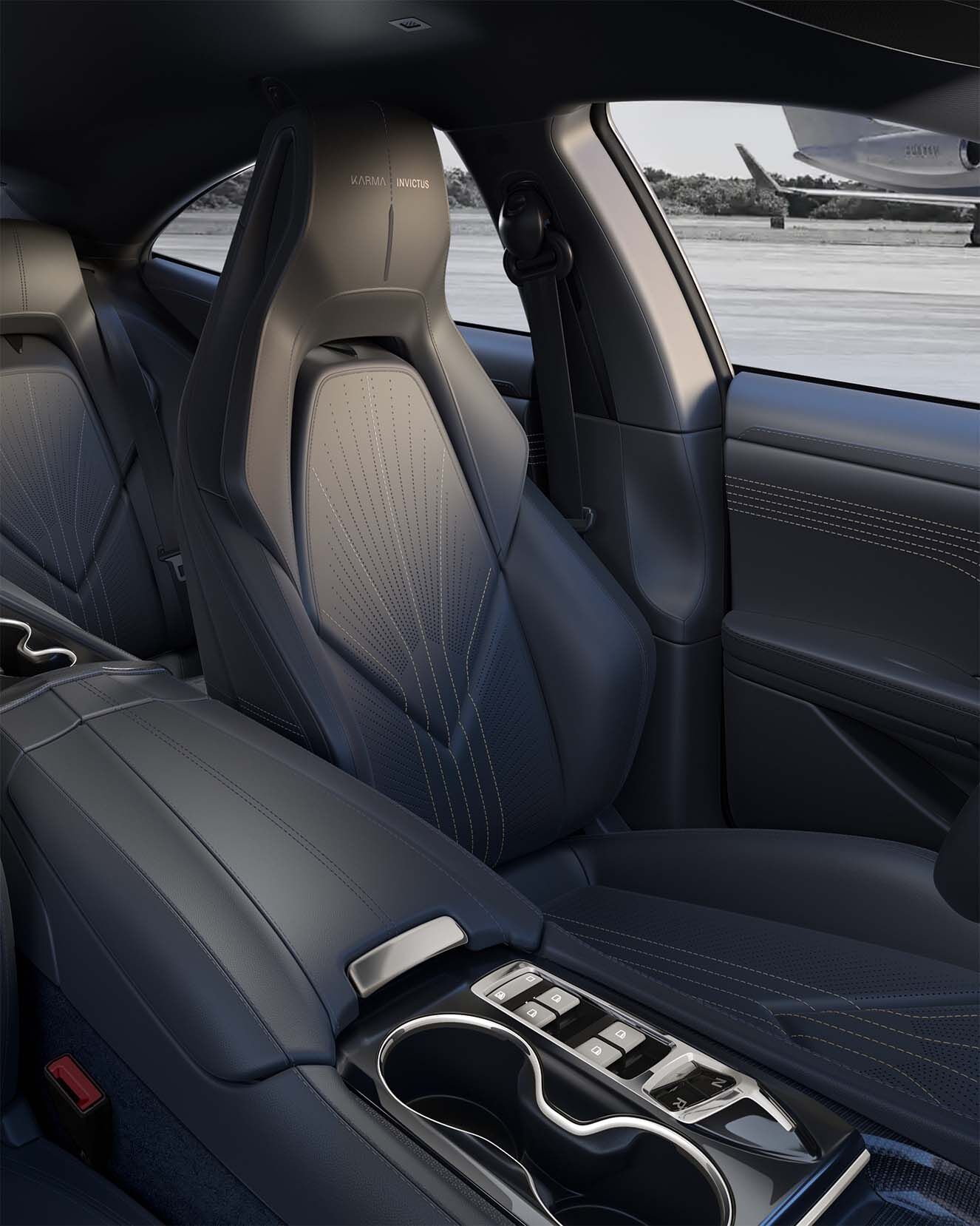 Karma Invictus exclusive seats features a quintessentially American art deco pattern, drawing inspiration from iconic New York buildings.